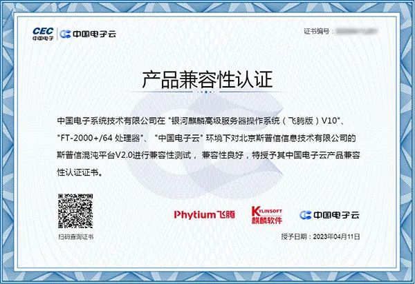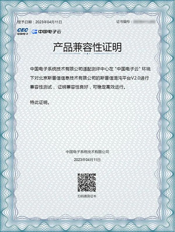 信創(chuàng)生態(tài) | 斯普信混沌平臺完成中國電子云系列兼容適配認證